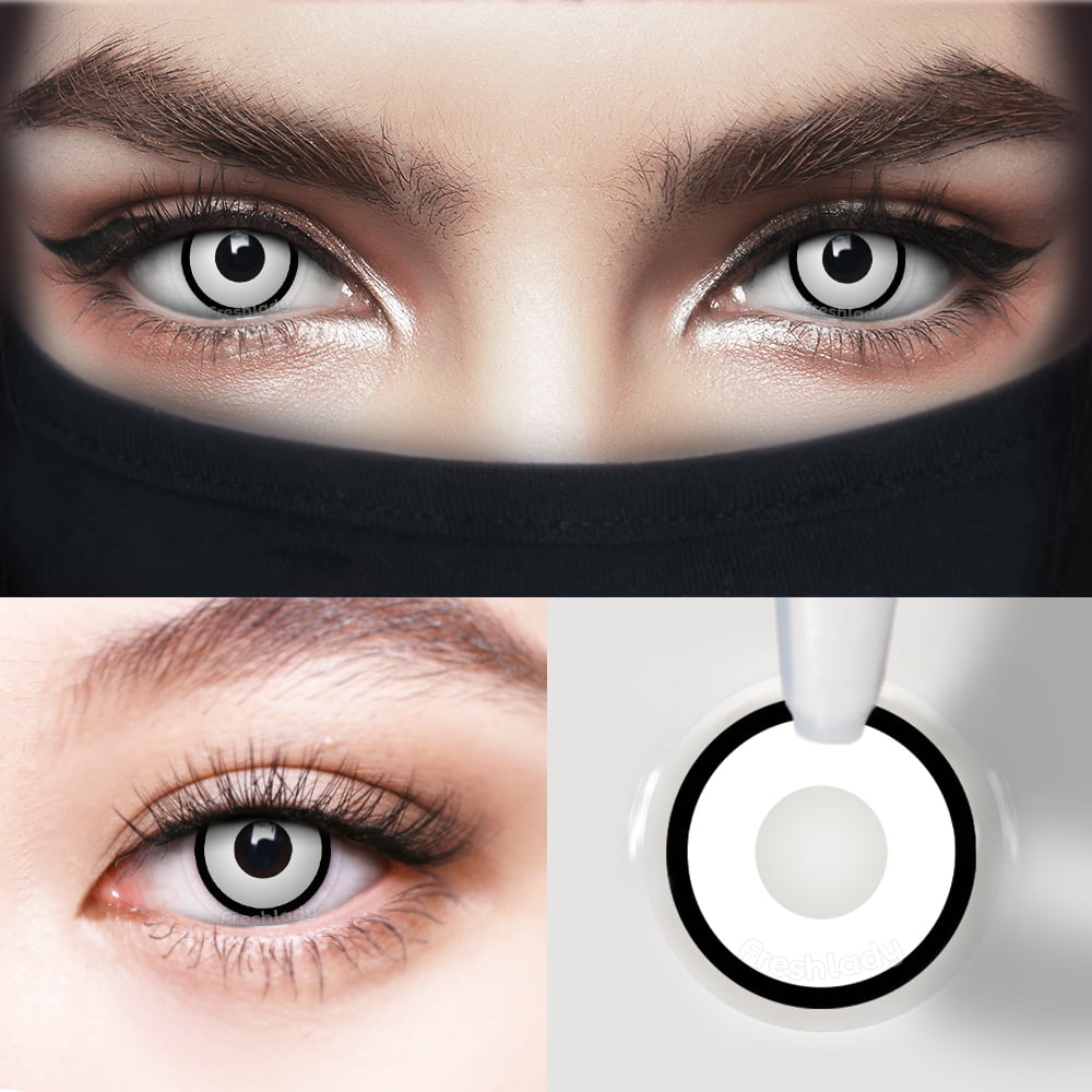 Whether you're transforming yourself with a brand new zombie costume or are just in need of a new pair of Halloween contact lenses, Freshlady white Manson contacts are sure to offer everything you need. they also feature a soft material composition with full-color coverage; making them a fantastic choice for all eye colors.