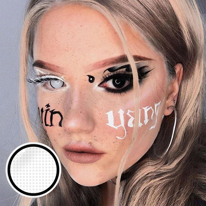 Freshlady White Manson lenses feature a micro-mesh print finish that's perfect for finishing any Halloween or Cosplay costume in style. If you're planning a vampire, demons, or devil look, then these contact lenses are sure to make any drab costume stand out. You're sure to scare your friends with this style as it covers both the iris and the pupil. Halloween contact lenses at their finest, don't plan your next fancy dress outfit without these in mind.